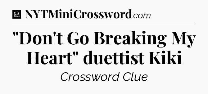 The clue “”Don’t Go Breaking My Heart” duettist Kiki” most recently appeared in a LA Times Crossword on May 13, 2020.