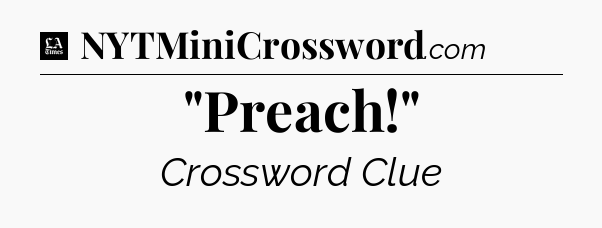 The clue “”Preach!”” most recently appeared in a LA Times Crossword on May 13, 2022.
