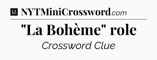 The clue “”La Bohème” role” most recently appeared in a LA Times Crossword on May 14, 2017.