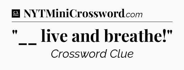 The clue “”__ live and breathe!”” most recently appeared in a LA Times Crossword on May 14, 2025.
