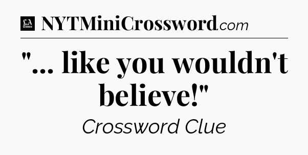 The clue “”… like you wouldn’t believe!”” most recently appeared in a LA Times Crossword on May 15, 2021.