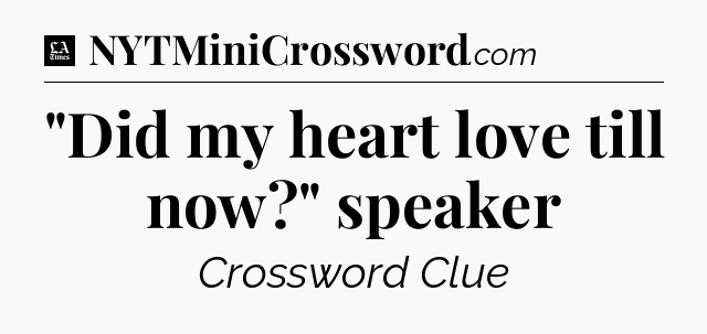 The clue “”Did my heart love till now?” speaker” most recently appeared in a LA Times Crossword on May 16, 2019.