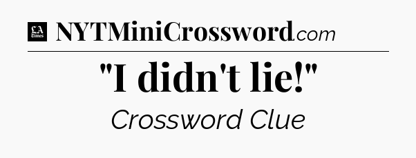 The clue “”I didn’t lie!”” most recently appeared in a LA Times Crossword on May 16, 2019.