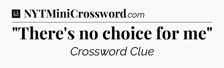 The clue “”There’s no choice for me”” most recently appeared in a LA Times Crossword on May 18, 2018.