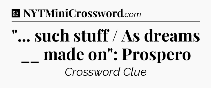 The clue “”… such stuff / As dreams __ made on”: Prospero” most recently appeared in a LA Times Crossword on May 19, 2017.