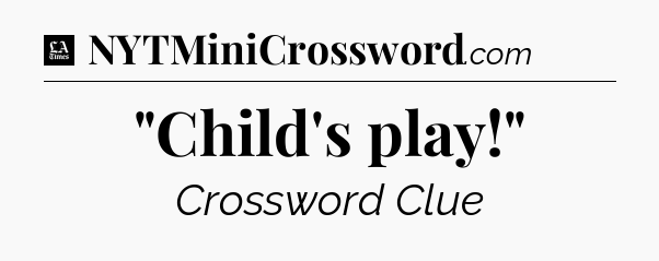 The clue “”Child’s play!”” most recently appeared in a LA Times Crossword on May 2, 2018.