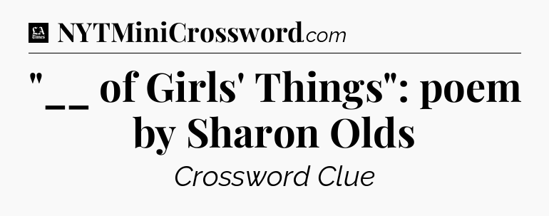 The clue “”__ of Girls’ Things”: poem by Sharon Olds” most recently appeared in a LA Times Crossword on May 2, 2022.