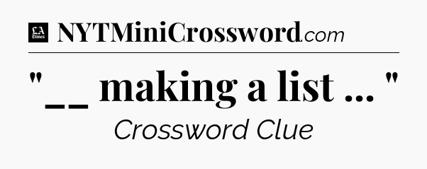 The Answer for “__ making a list … ” – LA Times Crossword Clue Solution is:
