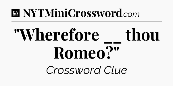 The clue “”Wherefore __ thou Romeo?”” most recently appeared in a LA Times Crossword on May 22, 2023.