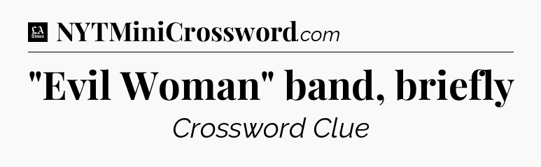 The clue “”Evil Woman” band, briefly” most recently appeared in a LA Times Crossword on May 23, 2018.
