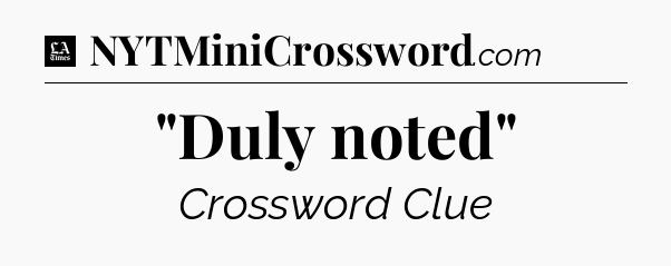 The clue “”Duly noted”” most recently appeared in a LA Times Crossword on May 23, 2022.