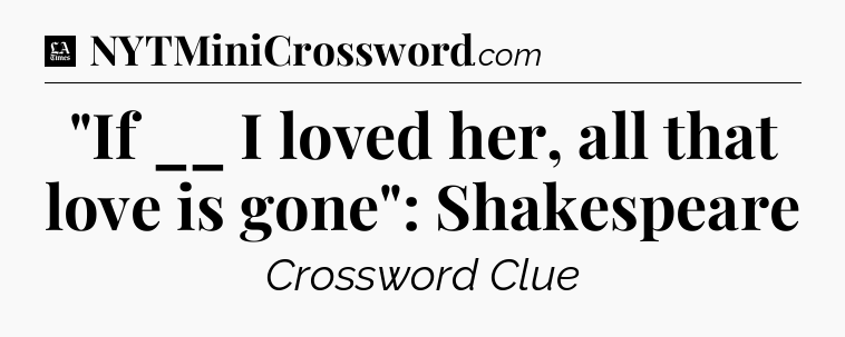 The clue “”If __ I loved her, all that love is gone”: Shakespeare” most recently appeared in a LA Times Crossword on May 24, 2018.