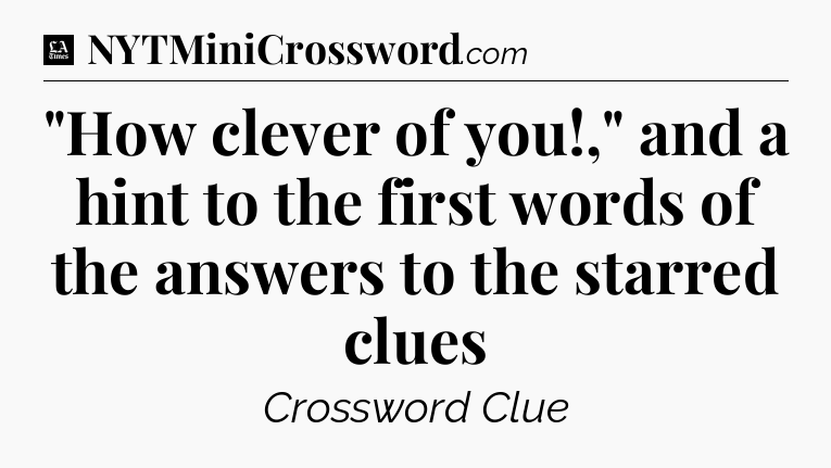 The clue “”How clever of you!,” and a hint to the first words of the answers to the starred clues” most recently appeared in a LA Times Crossword on May 24, 2022.