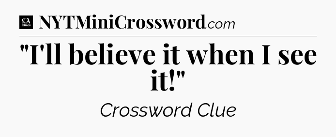 The clue “”I’ll believe it when I see it!”” most recently appeared in a LA Times Crossword on May 24, 2023.