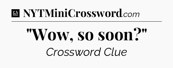 The clue “”Wow, so soon?”” most recently appeared in a LA Times Crossword on May 26, 2025.