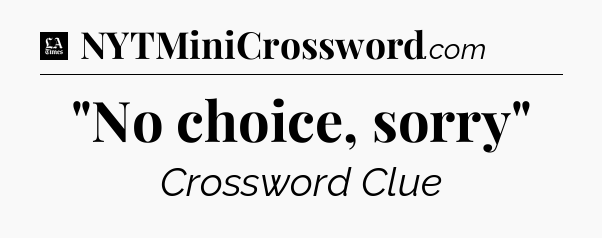 The clue “”No choice, sorry”” most recently appeared in a LA Times Crossword on May 27, 2025.