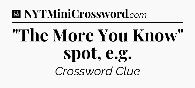 Looking for the answer to “The More You Know” spot, e.g from LA Times Crossword published on May 28 2023? We have the verified solution ready below.