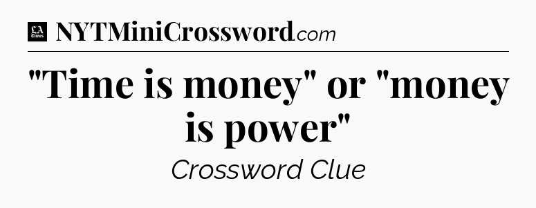 The clue “”Time is money” or “money is power”” most recently appeared in a LA Times Crossword on May 29, 2022.