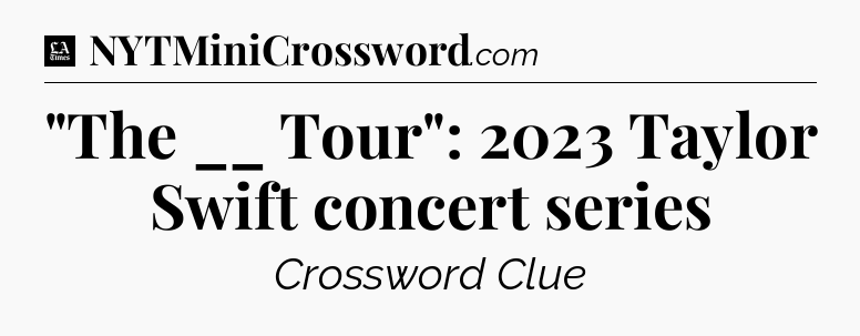 The clue “”The __ Tour”: 2023 Taylor Swift concert series” most recently appeared in a LA Times Crossword on May 3, 2023.