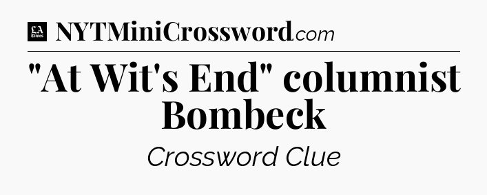 The clue “”At Wit’s End” columnist Bombeck” most recently appeared in a LA Times Crossword on May 30, 2018.