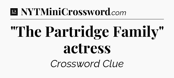 The clue “”The Partridge Family” actress” most recently appeared in a LA Times Crossword on May 31, 2017.