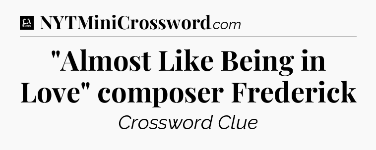 The clue “”Almost Like Being in Love” composer Frederick” most recently appeared in a LA Times Crossword on May 5, 2019.