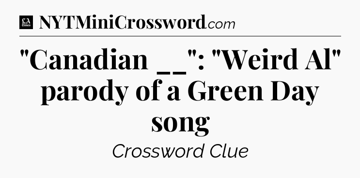 The clue “”Canadian __”: “Weird Al” parody of a Green Day song” most recently appeared in a LA Times Crossword on May 5, 2022.