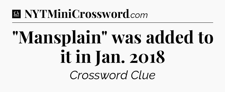 The clue “”Mansplain” was added to it in Jan. 2018″ most recently appeared in a LA Times Crossword on May 6, 2018.