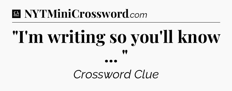 The clue “”I’m writing so you’ll know … “” most recently appeared in a LA Times Crossword on May 9, 2020.
