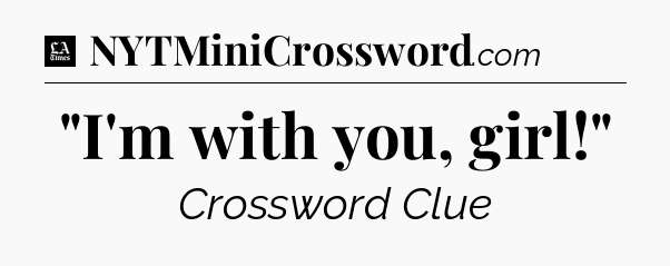 The clue “”I’m with you, girl!”” most recently appeared in a LA Times Crossword on June 10, 2017.
