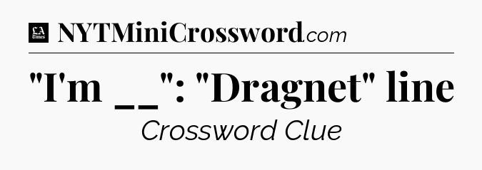 The clue “”I’m __”: “Dragnet” line” most recently appeared in a LA Times Crossword on June 10, 2018.