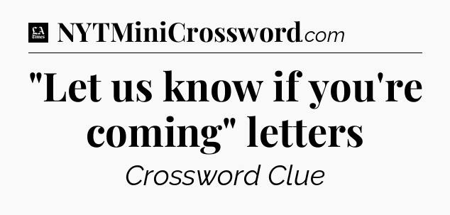 The clue “”Let us know if you’re coming” letters” most recently appeared in a LA Times Crossword on June 12, 2019.