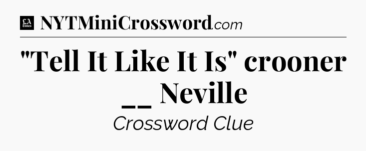 The clue “”Tell It Like It Is” crooner __ Neville” most recently appeared in a LA Times Crossword on June 13, 2018.