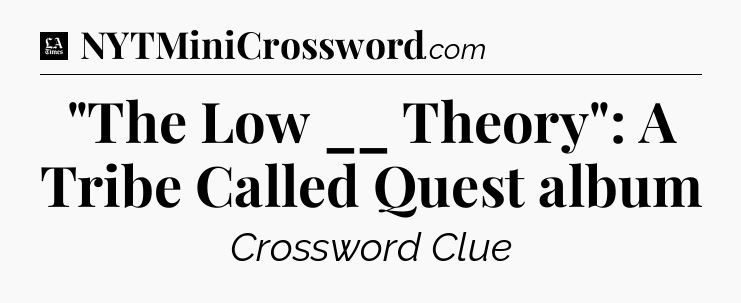 The clue “”The Low __ Theory”: A Tribe Called Quest album” most recently appeared in a LA Times Crossword on June 14, 2025.