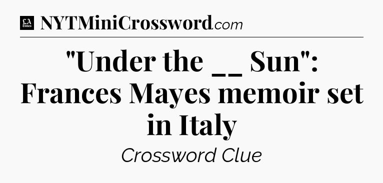The clue “”Under the __ Sun”: Frances Mayes memoir set in Italy” most recently appeared in a LA Times Crossword on June 15, 2023.
