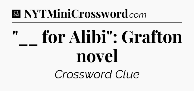 The clue “”__ for Alibi”: Grafton novel” most recently appeared in a LA Times Crossword on June 16, 2019.