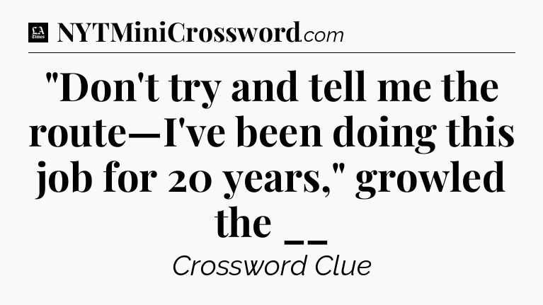 The clue “”Don’t try and tell me the route—I’ve been doing this job for 20 years,” growled the __” most recently appeared in a LA Times Crossword on June 16, 2025.