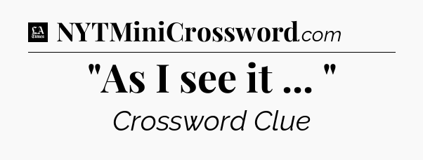The clue “”As I see it … “” most recently appeared in a LA Times Crossword on June 17, 2017.