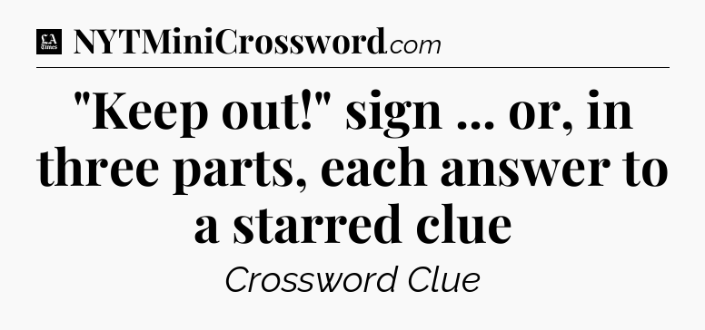 The clue “”Keep out!” sign … or, in three parts, each answer to a starred clue” most recently appeared in a LA Times Crossword on June 17, 2019.