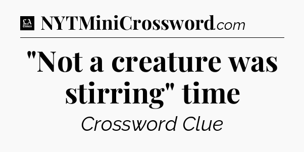 The clue “”Not a creature was stirring” time” most recently appeared in a LA Times Crossword on June 17, 2020.
