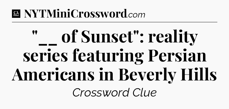 The clue “”__ of Sunset”: reality series featuring Persian Americans in Beverly Hills” most recently appeared in a LA Times Crossword on June 17, 2022.