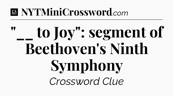The clue “”__ to Joy”: segment of Beethoven’s Ninth Symphony” most recently appeared in a LA Times Crossword on June 20, 2022.