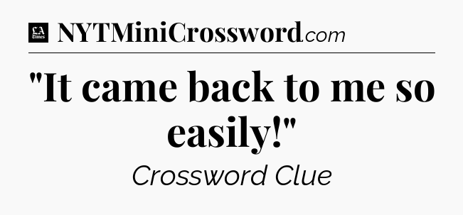 The clue “”It came back to me so easily!”” most recently appeared in a LA Times Crossword on June 21, 2025.