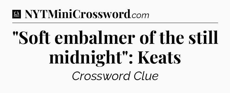 The clue “”Soft embalmer of the still midnight”: Keats” most recently appeared in a LA Times Crossword on June 22, 2021.
