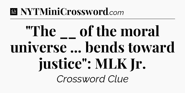 The clue “”The __ of the moral universe … bends toward justice”: MLK Jr” most recently appeared in a LA Times Crossword on June 22, 2021.