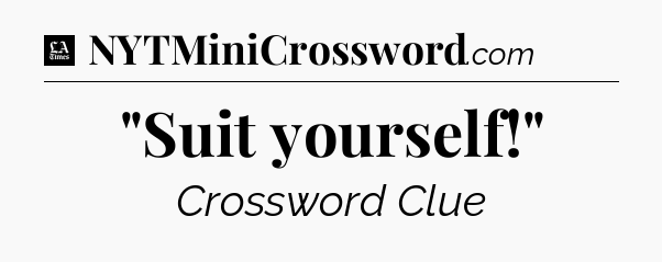 The clue “”Suit yourself!”” most recently appeared in a LA Times Crossword on June 24, 2022.