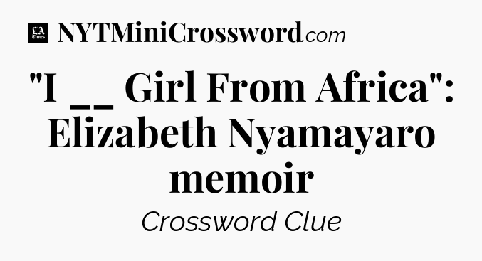 The clue “”I __ Girl From Africa”: Elizabeth Nyamayaro memoir” most recently appeared in a LA Times Crossword on June 25, 2022.