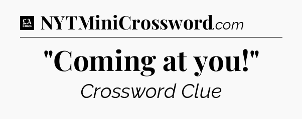 The clue “”Coming at you!”” most recently appeared in a LA Times Crossword on June 26, 2022.