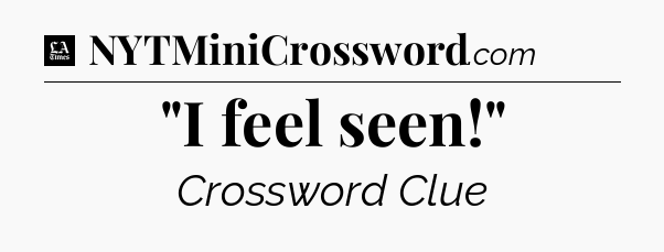 The clue “”I feel seen!”” most recently appeared in a LA Times Crossword on June 28, 2024.