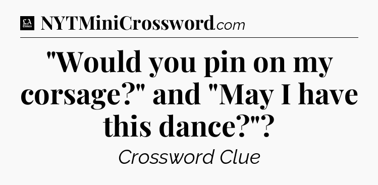 The clue “”Would you pin on my corsage?” and “May I have this dance?”” most recently appeared in a LA Times Crossword on June 29, 2023.